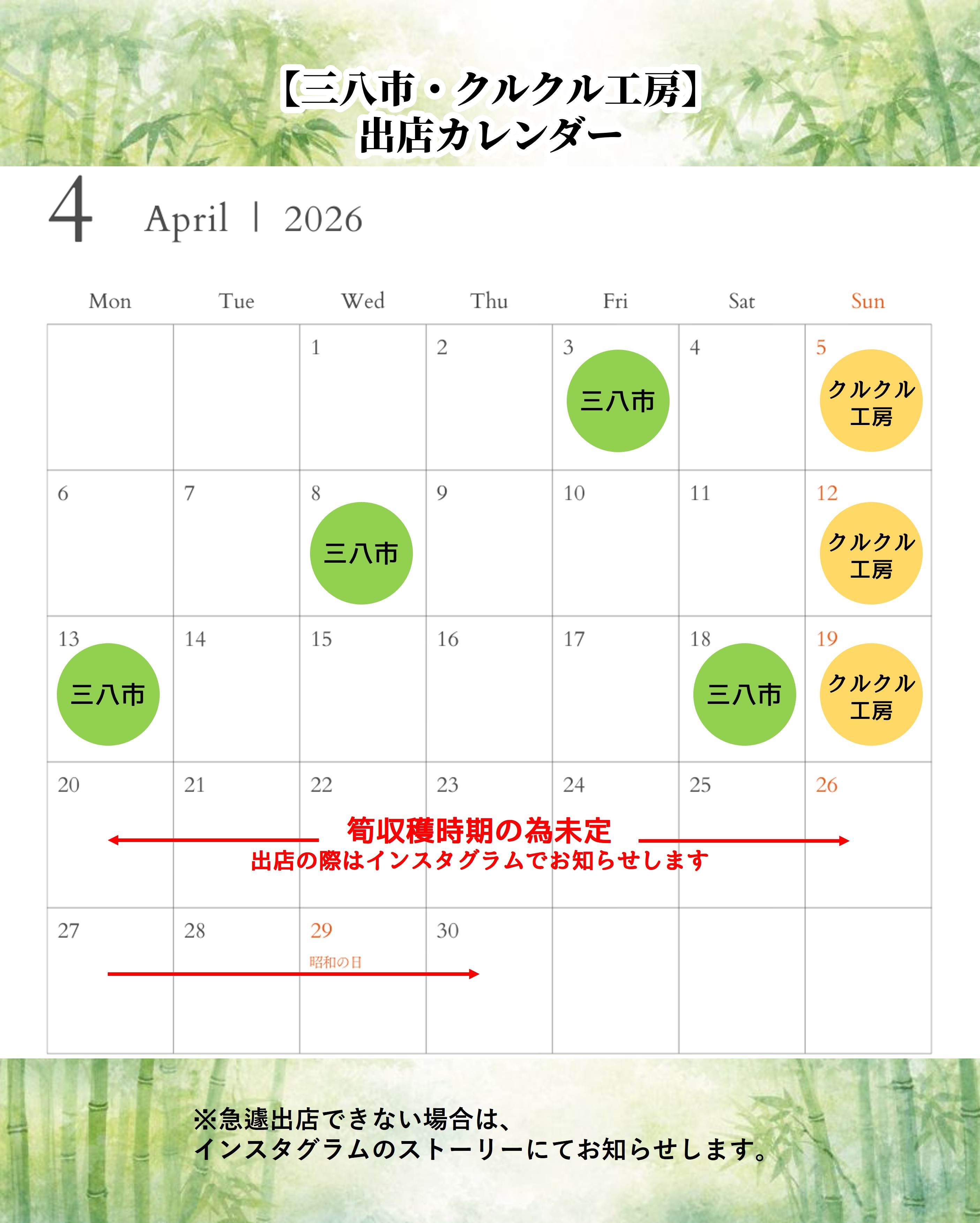 まるしげ4月出店のご案内